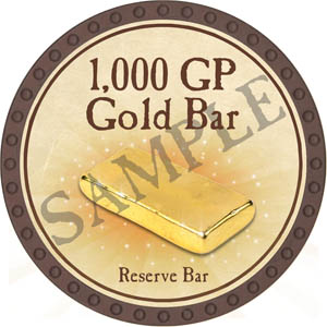 Equivalent to 1,000 GP Gold Piece or GP-equivalent tokens may be hoarded as treasure, traded with other adventurers (big-time token collectors may be especially interested in GP), exchanged for NPC services outside of the adventure, used as currency to bid on items in the True Dungeon auction, or exchanged for transmuted tokens on http://www.truedungeon.com/transmuted . On very rare occasions, certain NPCs within the adventure may be influenced by the offering of riches. In 2017, all Trade and Reserve tokens were redesigned with new high-rez artwork and chocolate-brown backs. Owners of the old, gold-backed versions could use their existing stock in transmuted recipes before December 1st, 2018. One-to-one exchanges could be done starting in September 2017. As of December 1st, 2018, the old versions are no longer exchangeable and may not be used in transmuted recipes. | |
