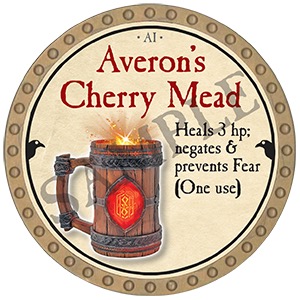 Back Color: Gold Classification: Liquid Converts To: Alchemist's Ink Heals HP: Caster/Consumer Limited Use: Expendable, Single Use Liquid Type: Potion Misc: Honorarily Named Named For: Avery Martin Prevents Effect: Fear Rarity: Rare Removes Effect: Feared Slot: Slotless Source: Appreciation Usable By: All, Barbarian, Bard, Cleric, Druid, Dwarf Fighter, Elf Wizard, Fighter, Monk, Paladin, Ranger, Rogue, Wizard Year: 2025